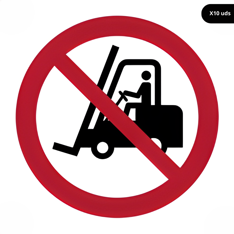 Señal prohibido el paso para carretillas elevadoras y otros vehículos industriales.